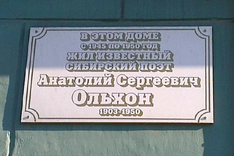 Известный не только в Сибири, но и далеко за ее пределами поэт Анатолий Сергеевич Ольхон родился 11(24) марта 1903 г. в г. Во¬логде в семье рабочего обувной фабрики. Окончил заочно Ленин¬градский пединститут им. А. И. Герце¬на. В юности работал грузчиком на лесозаготовках, рабочим, сотрудничал с газетами как кор¬респондент, много ездил по стра¬не: побывал на Крайнем Севере, в Коми АССР, на Украине, в За¬кавказье, Средней Азии.