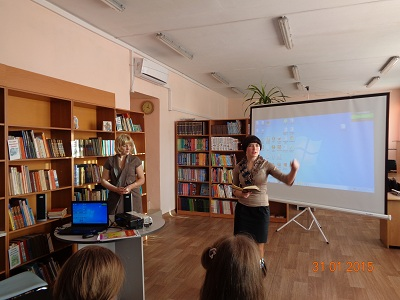 День туристической книги в Усть-Илимске. Терентьева О. проводит обзор изданий из фондов МБУК «ЦБС» г. Усть-Илимска